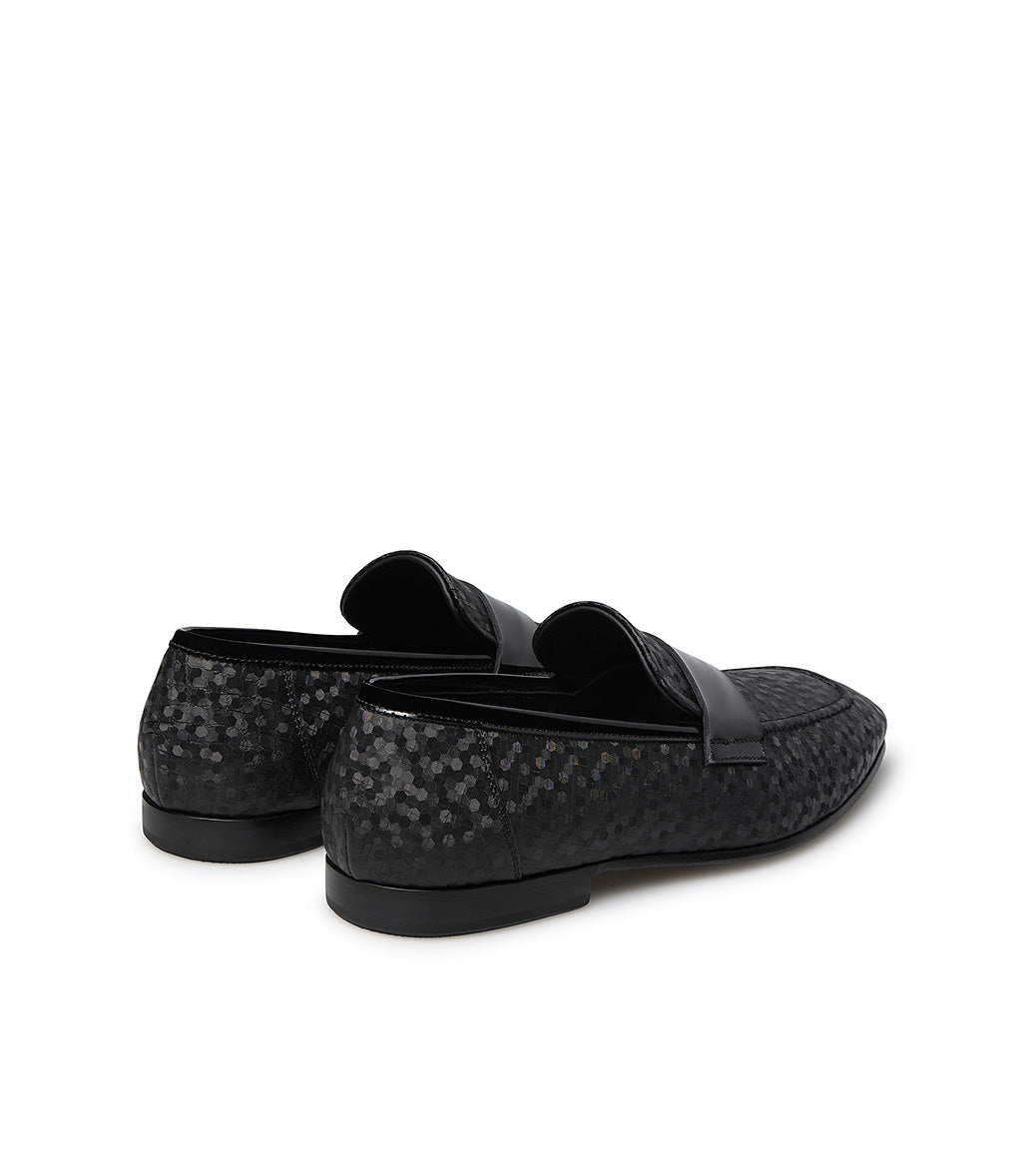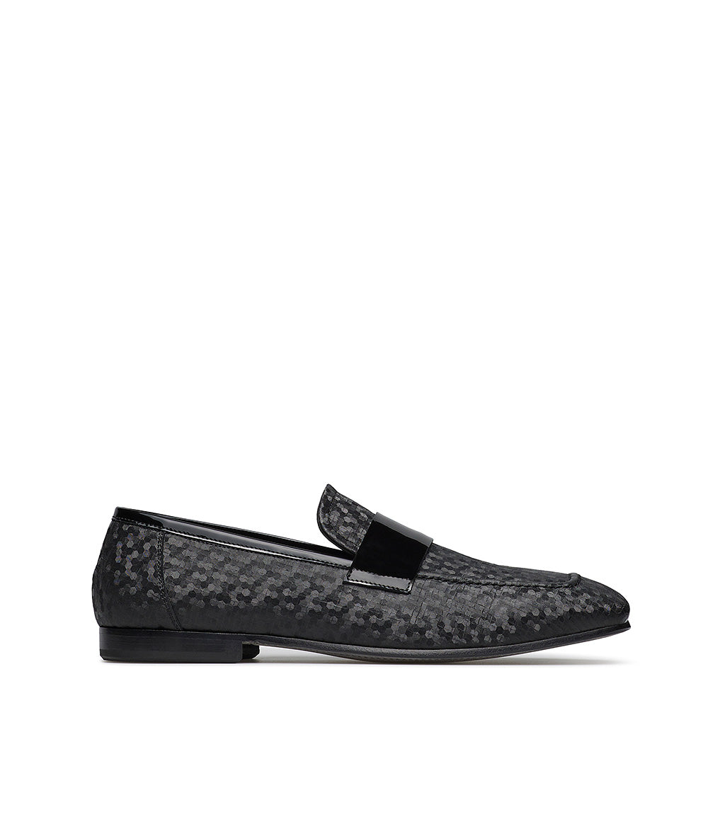 Loafer in tessuto e vernice nera