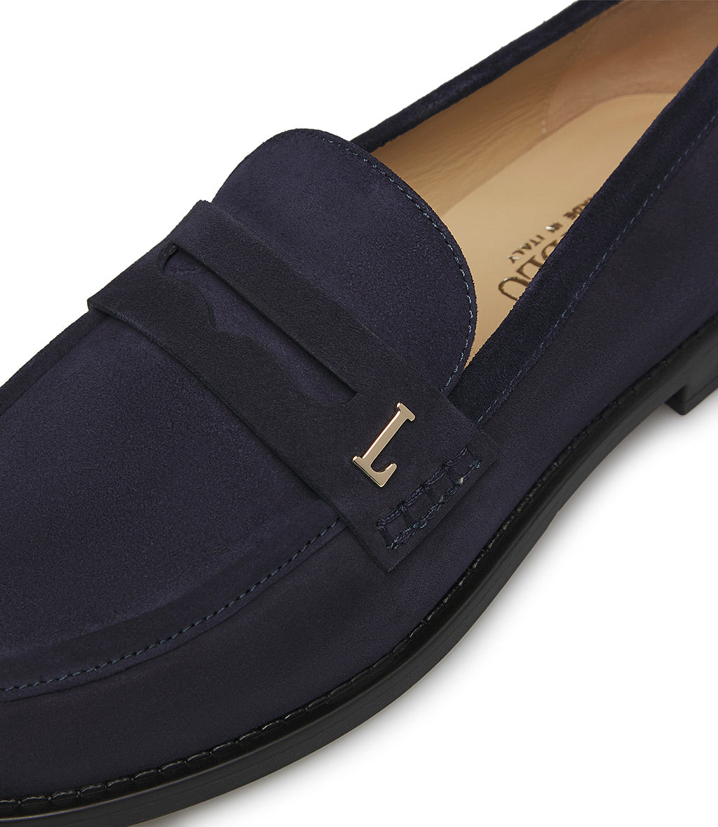 Our comfortable loafers feature a flawless and timeless silhouette. Crafted in Italy from premium blue suede, they stand out thanks to the gold-tone Loriblu logo on the toe. The handcrafted, tone-on-tone stitching on the rounded toe is impeccable. Sitting on a leather sole, they're the ideal accessory for elegant everyday wear.