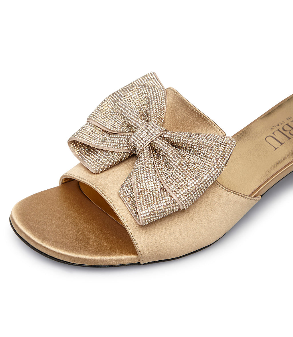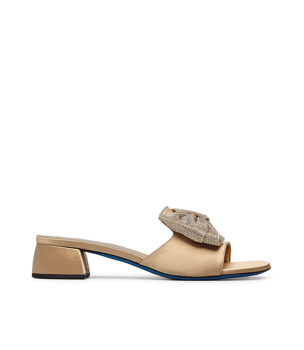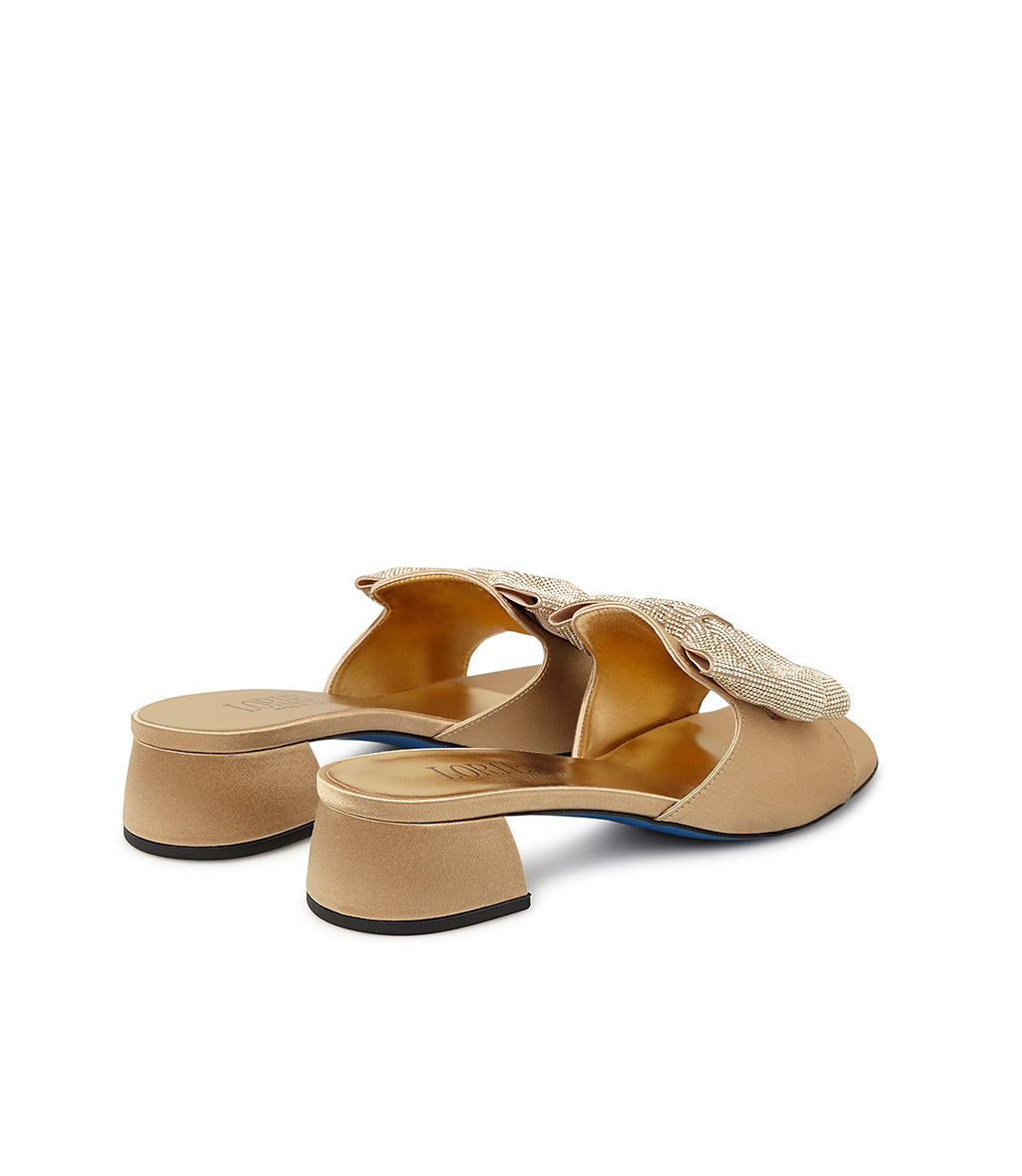 Gold satin mule with bow