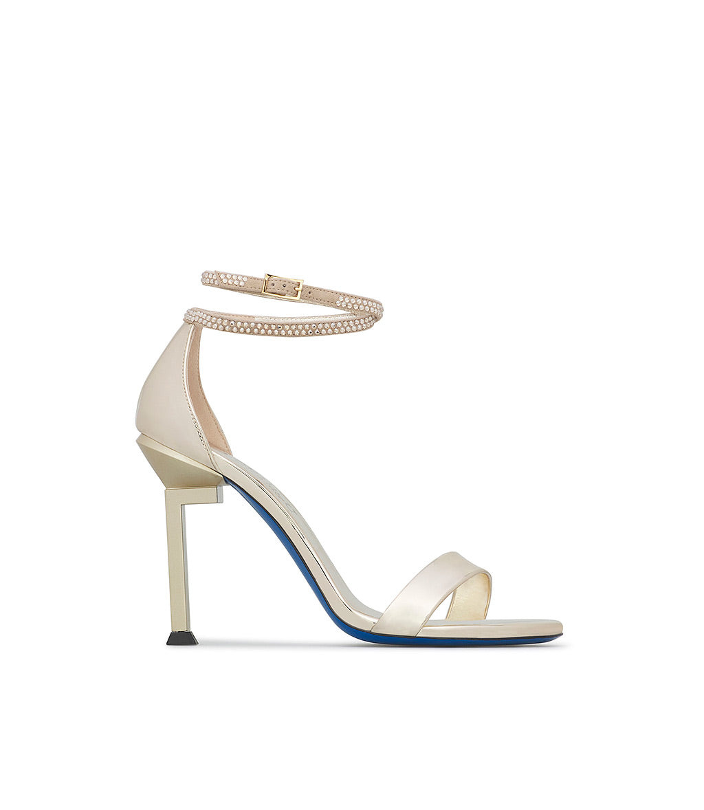 Sandalo in vernice platino