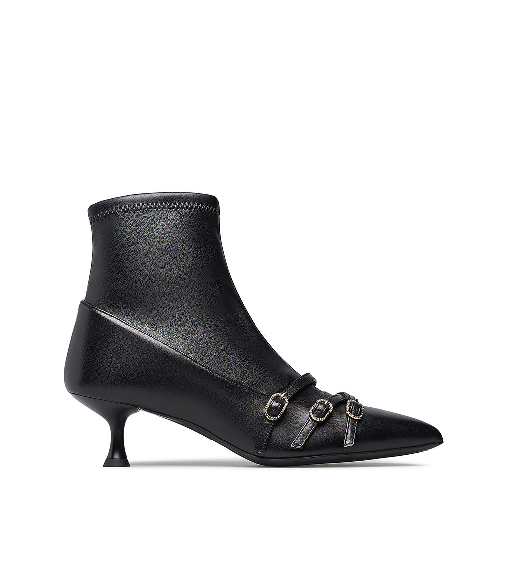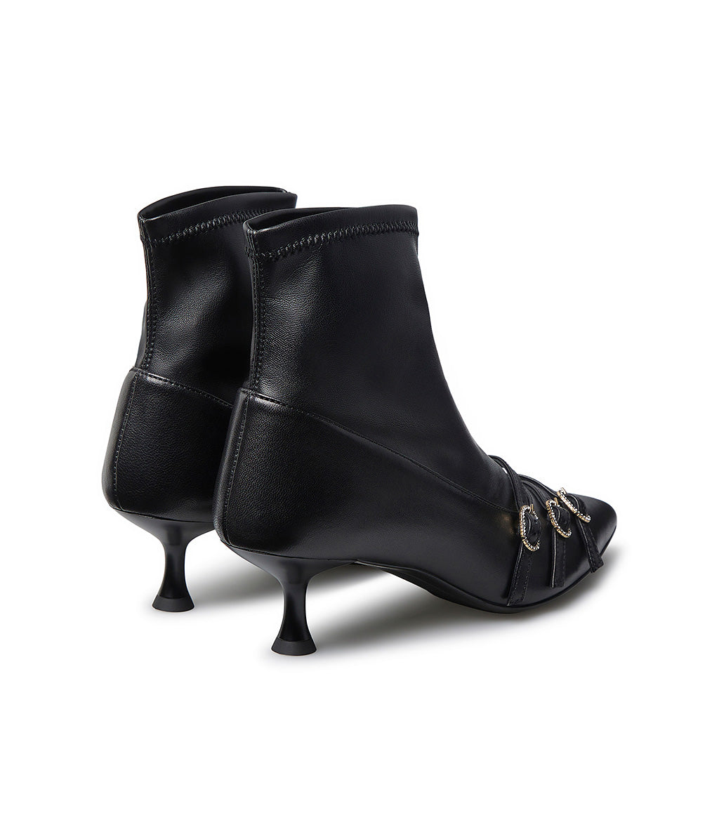 Straped black nappa leather ankle boots
